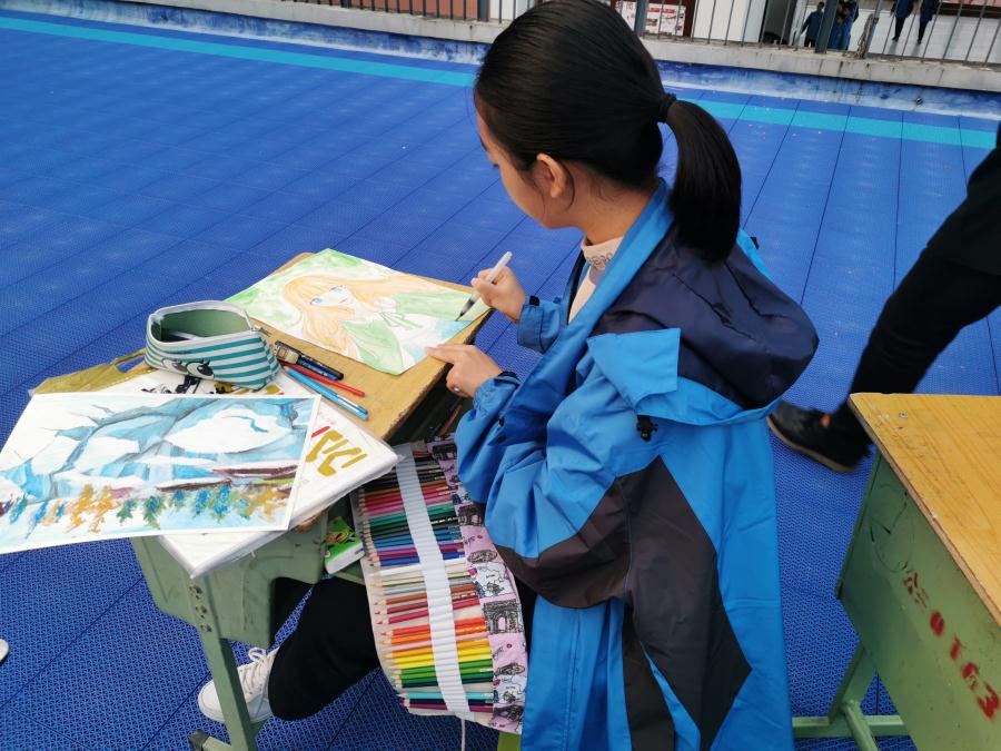 11月6日星期三下午,我校第十二届人文艺术节现场书画比赛在图书馆顶开展,73位学生参加比赛,在短短一个小时内展现自己的艺术才能。